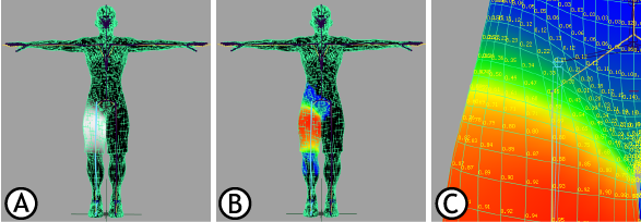 绘制的值可设置此关节相对于组成平滑体的其他关节对绘制的顶点的影响力(直到达到在绑定蒙皮选项(Bind Skin Options)中指定为“最大影响物”(Max Influences)的数值)。