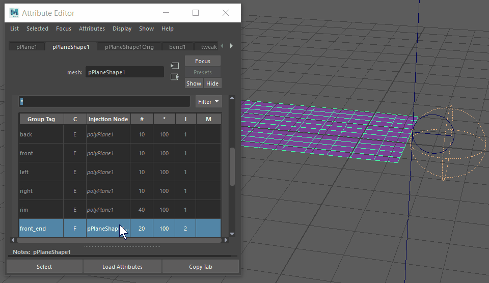 注: 如果“变形器属性”(Deformer Attributes)区域灰显,则选定变形器不支持衰减。