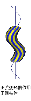 正弦变形器用于沿正弦波操纵任意可变形对象。正弦变形器对于角色设置和建模非常有用。正弦变形器包含控制柄,可用于直观控制正弦波效果的范围、振幅和波长。