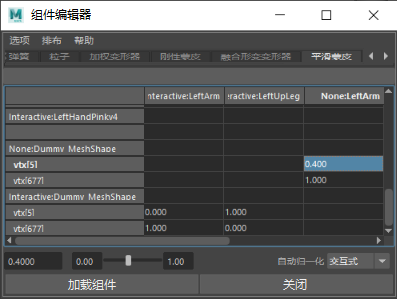 在“组件编辑器”(Component Editor)中,启用或禁用“列表 > 自动更新”(List > Auto Update)。 禁用“自动更新”(Auto Update)时,通过“加载组件”(Load Components)按钮使用当前选择更新窗口。 |