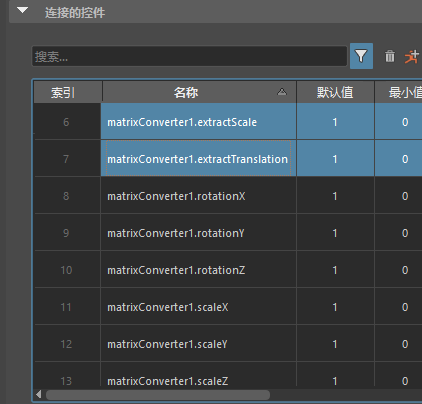 “连接的控件”(Connected Controls)列表,带有标量(左)和矩阵(右)