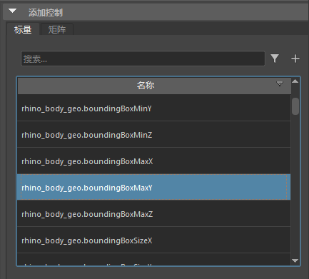 控件属性有两个选项卡:“标量”(Scalar)和“矩阵”(Matrix)。“标量”(Scalar)属性通常是已设置动画的浮点值,这些值影响近似的复杂变形,例如,扭曲变形器的“开始/结束”(Start/End)角度。