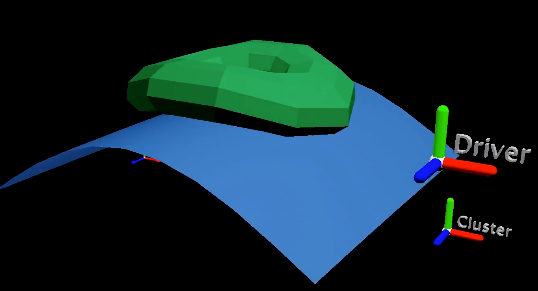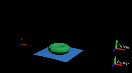 在上面的示例中,蓝色平面是驱动者,影响绿色圆环。蓝色平面的顶点由变形变形器和簇变形器变形。
