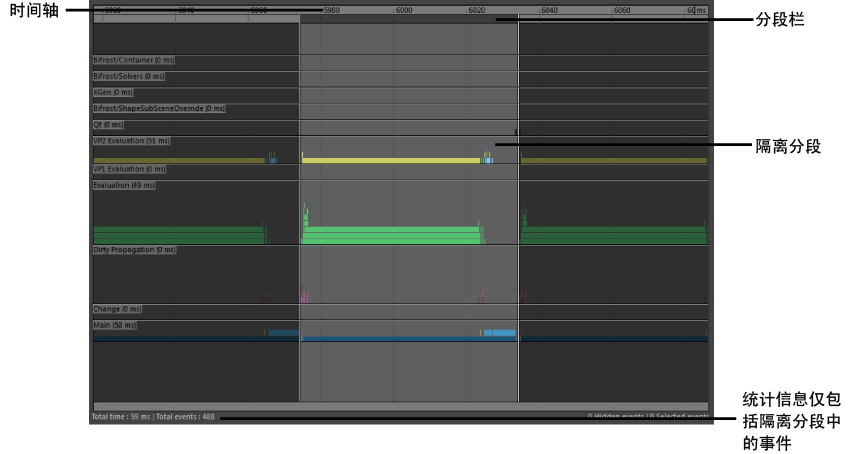 也可以使用命令隔离特定的分段或返回到默认视图。有关详细信息,请参见 profilerTool 命令文档。