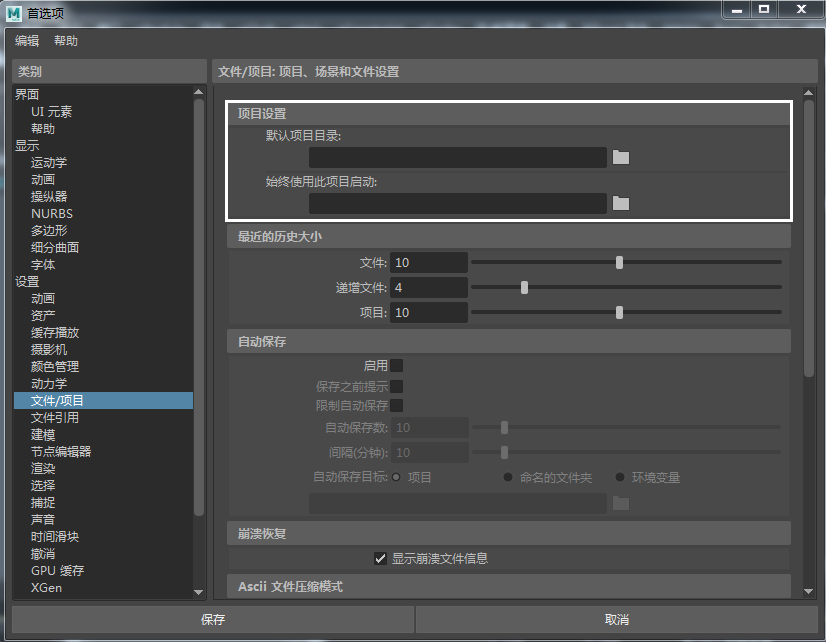 您还可以设置目录,以便 Maya 每次都从此项目开始。