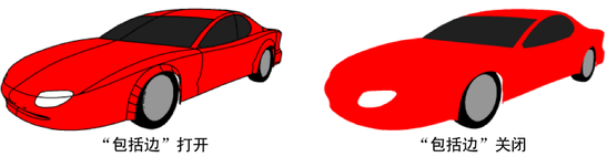 在禁用“组合填充”(Combine Fills)“组合填充”和“边”(Edges)时,曲面的轮廓和填充是单独的对象。如果将文件导入 Flash 编写应用程序中,则可以分离轮廓和填充而不用分开该对象。但是,渲染文件的大小大于启用“组合填充”(Combine Fills)“组合填充”和“边”(Edges)时的大小。