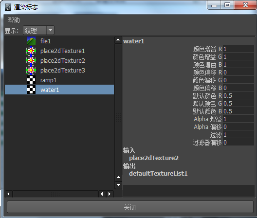 “渲染标志”(Rendering Flags)窗口包含两个面板。左侧面板列出您从“显示”菜单中选择的项目,右侧面板列出选定项目的属性。在左侧面板中单击您要更改或设定其属性的列表项,详细信息即显示在右侧面板中。
