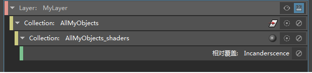 系统将自动在对象集合之下创建着色器子集合,以及对应的“白炽度”(Incandescence)覆盖。