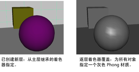 这将创建材质和将覆盖指定给当前层上的对象的所有着色器的指定。