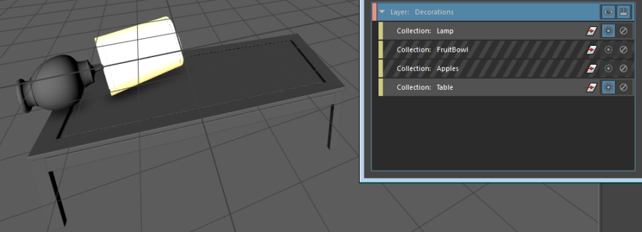 在本示例中,“灯”(Lamp)和“桌子”(Table)集合已设置为隔离选定对象并显示在视口中。