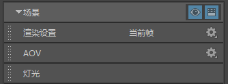 如果在查看场景层时打开“渲染设置”(Render Settings),将显示场景的“渲染设置”(Render Settings)。如果您正在查看任一层(如 layer1),那么将显示 layer1 的“渲染设置”(Render Settings)。这同样适用于“AOVs”(AOV)和“灯光”(Lights)选项卡。