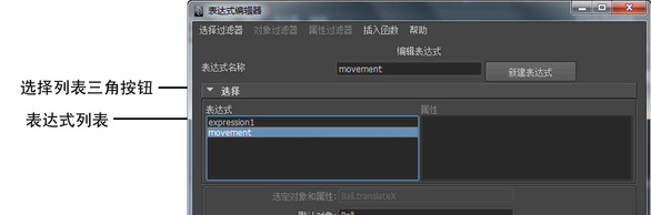 创建新的表达式时,可以单击此列表中的一个对象,以选择该表达式应用到的默认对象。