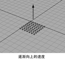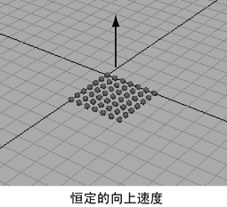 在播放动画时,该表达式将随着时间值的增加来增大速度的 Y 分量。这使得栅格中的所有粒子都随着时间的增加以更快的速度上升。增大的速度与加速度相同。