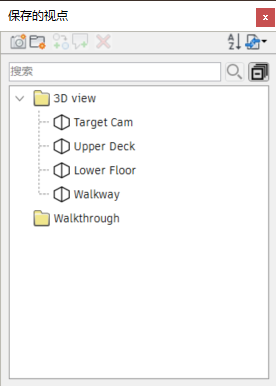 “保存的视点”窗口是一个可固定窗口,通过该窗口可以跳转到预设视点,而无需每次都通过导航访问项目。