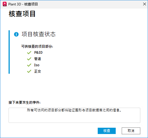 新的“核查项目”界面提供了扩展的核查功能。在项目管理器中的项目上单击鼠标右键并选择“核查项目”或在命令提示下输入 AUDITPROJECT 时,系统将显示“核查项目”对话框。