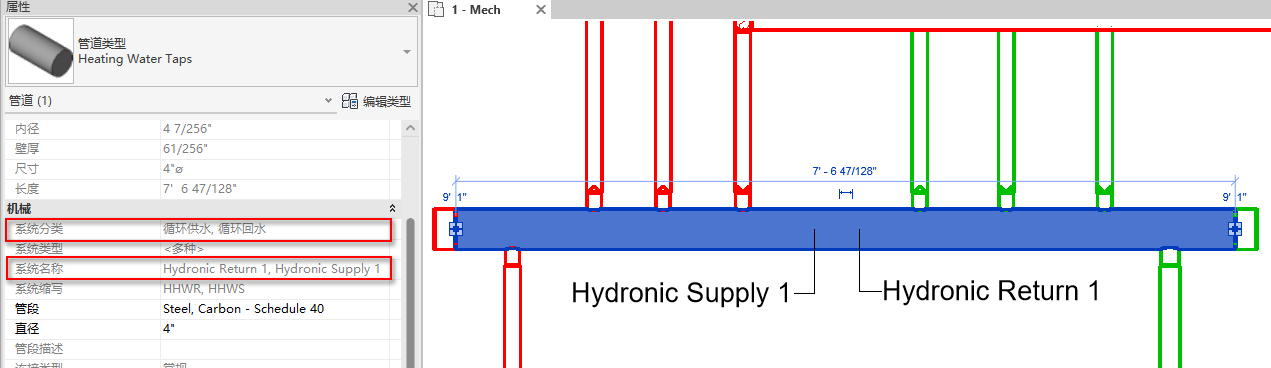 回路将以分析方式分离:二次回路从主回路分离,三次回路从二次回路分离,依此类推(必要时)。每个回路都会指定给其自己的供水和回水系统。因此,主系统和次系统使用相同的系统类型,但指定了不同的系统实例。次系统的系统名称附有一个句点,后跟一个数字。例如,由一个主回路和两个二次回路组成的管网使用名为“Hydronic Supply 1”的供水系统。在水力分级后,该管网由名为“Hydronic Supply 1”的主回路以及分别名为“Hydronic Supply 1.1”和“Hydronic Supply 1.2”的两个二次回路组成。