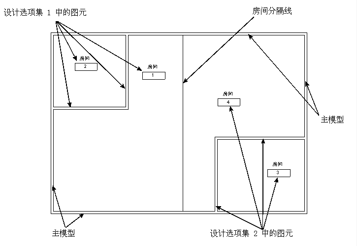 如果希望在每个设计选项中房间的形状、大小或位置都发生变化,或者每个设计选项中的房间都具有不同的房间属性(例如占用),请将房间添加至集中的每个设计选项。要执行此操作,可使用以下两种方法之一:
