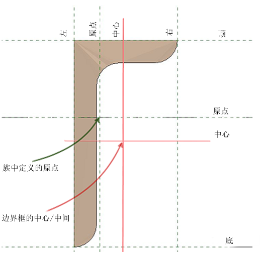 下图显示了族几何图形原点与边界框中心之间的差异。