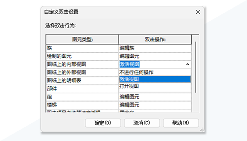 “选项”中的“自定义双击设置”对话框已调整。