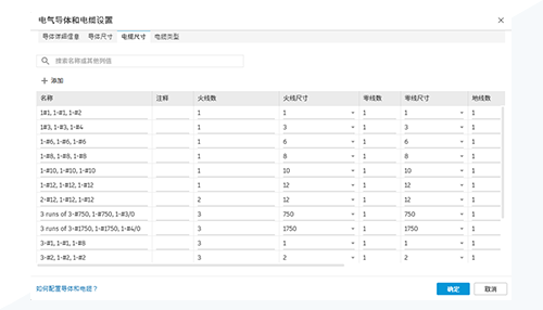 有关其他信息,请参见电气导体和电缆设置。