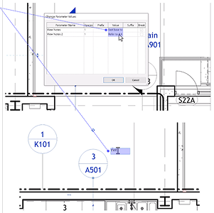 对于兼容的参数,现在可以直接在画布中修改剖面、立面、详图索引和视图参照对象的单行或多行标签。