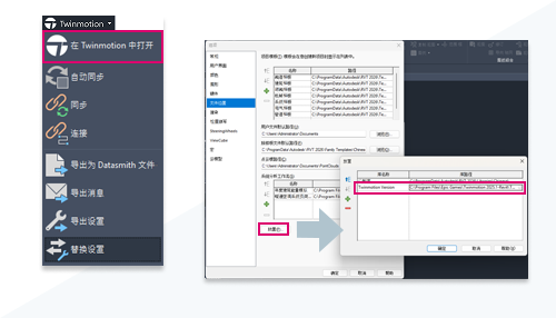 使用计算机上安装的首选 Twinmotion 版本打开 Revit 设计。