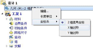 该几何模型关于 x 轴轴对称。我们将在设计分析树中更改坐标系。