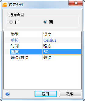 此模型包含一个速度、两个温度以及一个压力边界条件。