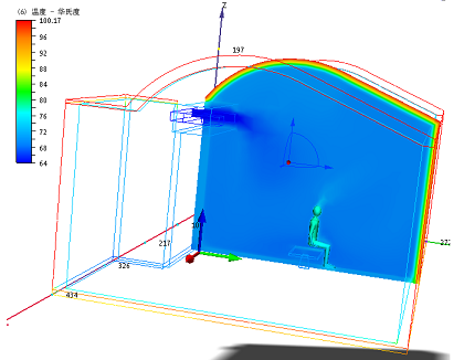 注意:这些图像在截面上显示了使用者历经的温度变化。在“夏季”工况中,冷空气迅速下降并从后方包围居住者。在“冬季”工况中,暖空气由于浮力上升并在房间内部运动。