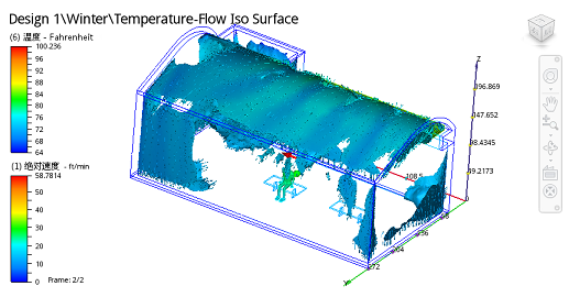 注意:为便于参考,下面列出“夏季”工况中的等值面(恒定速度 = 28 ft/min,按温度着色):