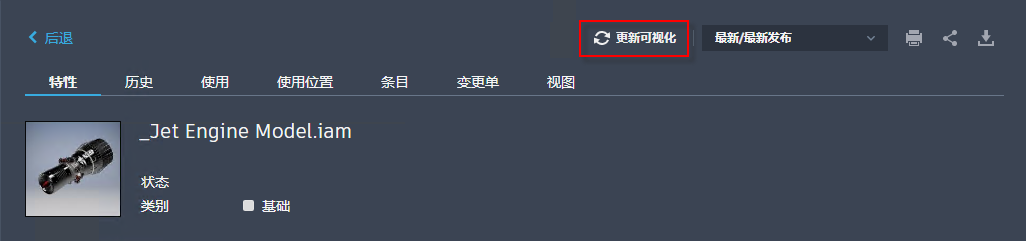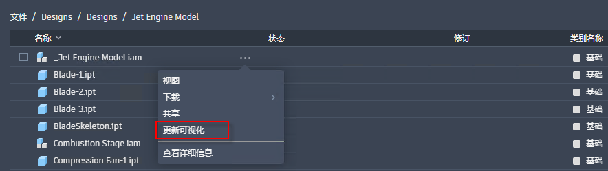 可以更新可视化文件,以便 CAD 文件的最新 DWF 可供使用。如果可视化文件已更新,则会将作业发送至作业服务器进行处理。仅当作业服务器处于启用状态并打开时,“更新可视化文件”命令才可用。