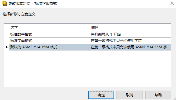 在“更改修订方案定义”对话框中,选择您要分配给选定条目的新修订方案。单击“确定”。