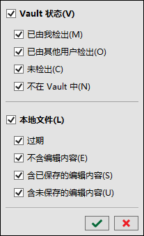 - 选择“已由我检出”仅列出当前由您检出的文件。