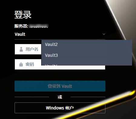 Vault 2023.2 允许您查看所有可用的 Vault,并在登录到 Thin Client 时选择需要连接到的 Vault。URL 中的 Vault 名称会在选择 Vault 时发生变化。您也可以在登录到 Thin Client 之后,在 Thin Client 界面中更改 Vault。