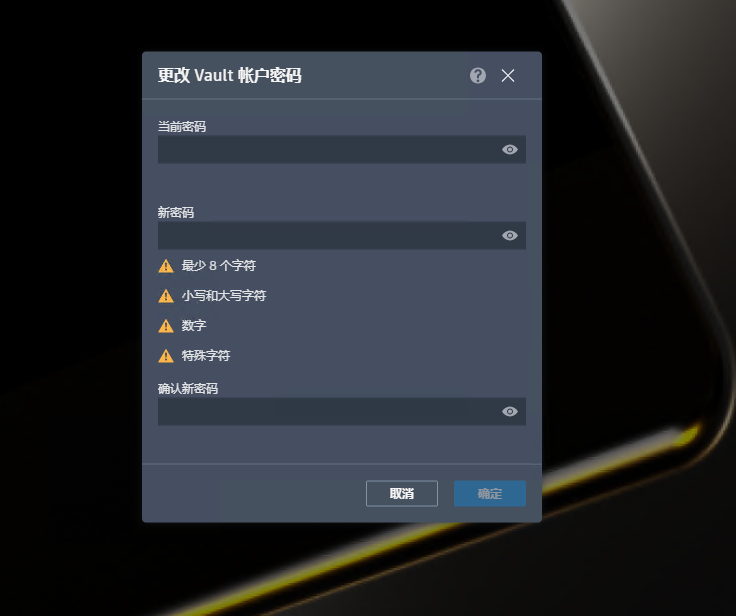 如果管理员执行密码策略,而当前密码不符合设置的要求,Vault 会提示用户下次通过 Thin Client 或 Thick Client 登录时重置密码。有关详细信息,请参见