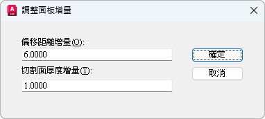 例如,如果您將「偏移距離增量」值設定為 6.0000,則在「剖面偏移」控制項中按一下向上箭頭時,就會將「剖面偏移」值增加 6.0000 點。