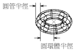 定義圓環的半徑:從圓環中心點到細管中心點的距離。負的半徑會產生造型類似美式足球的實體。