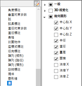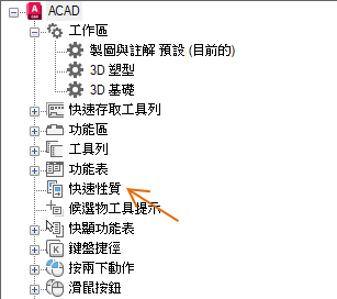 如果已勾選某個物件類型,在選取相同類型的物件時,以及 QPMODE 設定為 2 且 PICKFIRST 開啟時,則會在「快速性質」選項板上顯示該物件類型的性質。清除物件類型旁邊的勾選標記可以從「快速性質」選項板移除所選取的物件類型。