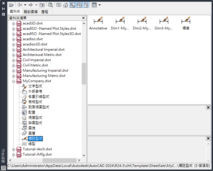 - 在右上方面板中按兩下「標註型式」,開始建立標註型式。