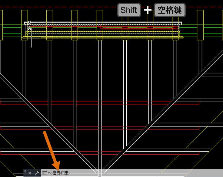 選取堆疊的物件後,如果您在指令視窗中看到 <循環打開>,就表示您正處於選集循環模式中。
