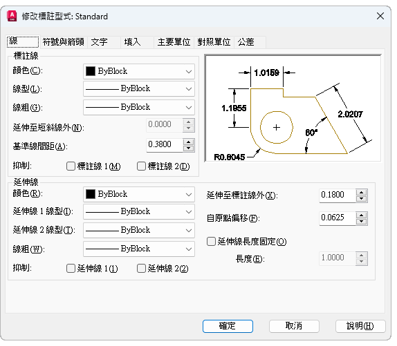 標註型式可協助您建立及執行製圖標準。您可以使用 DIMSTYLE 指令來設定許多標註變數,以控制標註外觀和模式的細微差別。所有這些設定都儲存在每個標註型式中。