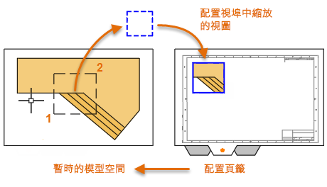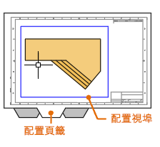 在稱為「配置」之標準大小的圖紙上,顯示一或多個設計的比例視圖。