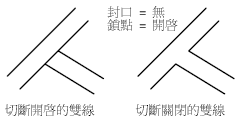 雙線的末端可以是開放的、封閉的,或者各不相同。當打開收頭後,程式會連接或封住指定的末端。「自動」選項僅自動封住未鎖點到物件的末端。