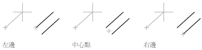 偏移值為負,則雙線的偏移邊位於指定點的左側;偏移值為正,則偏移邊位於右側。左側與右側是透過假想您正站在線的起點向端點方向看來決定的。