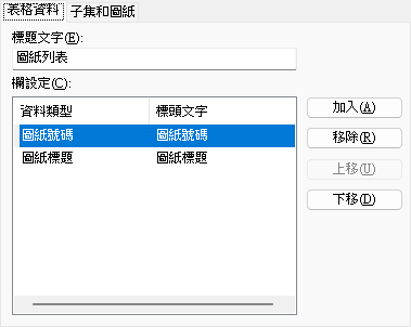 可讓您變更圖紙列表中每個欄的標題文字。