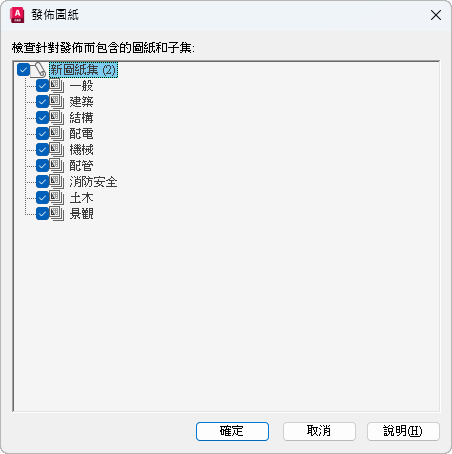 「編輯子集和圖紙發佈設定」