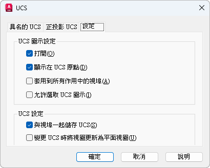 UCS 對話方塊有下列頁籤: