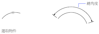 透過指定從固定端點量起的絕對長度來設定所選物件的長度。透過指定總的角度,「全部」也設定選定弧的夾角。
