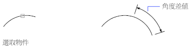 從距離選取點最近的端點處開始測量,以指定的增量變更物件的長度。差值還透過指定角度的增量來變更弧的角度,從距離選取點最近的端點處開始測量。正值延伸物件;而負值修剪物件。