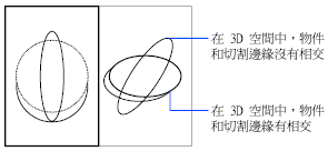指定不投影。此指令只會修剪在 3D 空間內與切割邊相交的物件。